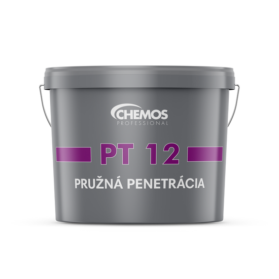 Vysoce pružná tmelicí hmota a penetrace v jednom, určená na přípravu dřevěných podkladů před stěrkováním, přechodových prvků mezi dřevěnými podlahami (ne na uzavírání dilatací). Dvousložková cemento-disperzní tmelicí hmota s vysokou konečnou pružností. Slouží jako tmelicí a zároveň jako penetrační vrstva při předpřípravě podkladů ze starých parket, dřevěných záklopových podlah, dřevotřískových a OSB dřevěných podlah. Kromě tmelení a penetrování dřevěného podkladu vytváří na dřevě adhezní můstek pro zlepšení adheze následných vrstev. Vysoká elasticita a adheze hmoty CHEMOS PT 12 zabezpečuje pevné vytmelení staré dřevěné podlahoviny a vytvoření monolitické nesavé podlahy pro dokonalý efekt při vylévání samonivelačních hmot CHEMOS. I přes svoje složení ji nemůžeme považovat jako uzávěru proti vlhkosti a nemůžeme ji použít na vyplnění dilatací původní dřevěné podlahy.